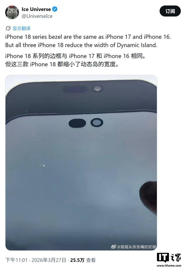 爆料账号“Early Apple Leaks”率先发布相关照片,宣称 iPhone 18 全系标配这种新型小尺寸挖孔设计。IT之家附上相关截图如下: