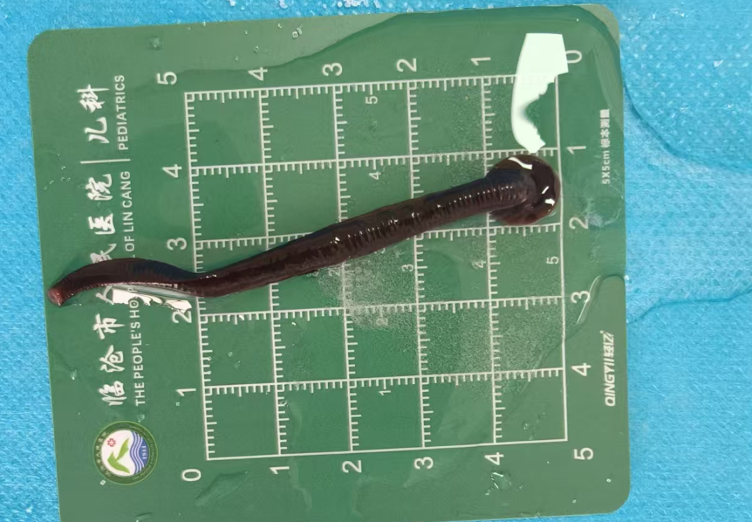 这是一条整整 8 厘米长的活体蚂蟥,在过去一段时间里,它牢牢吸附在一位 8 岁儿童的气管中,几乎堵塞了整个气道。